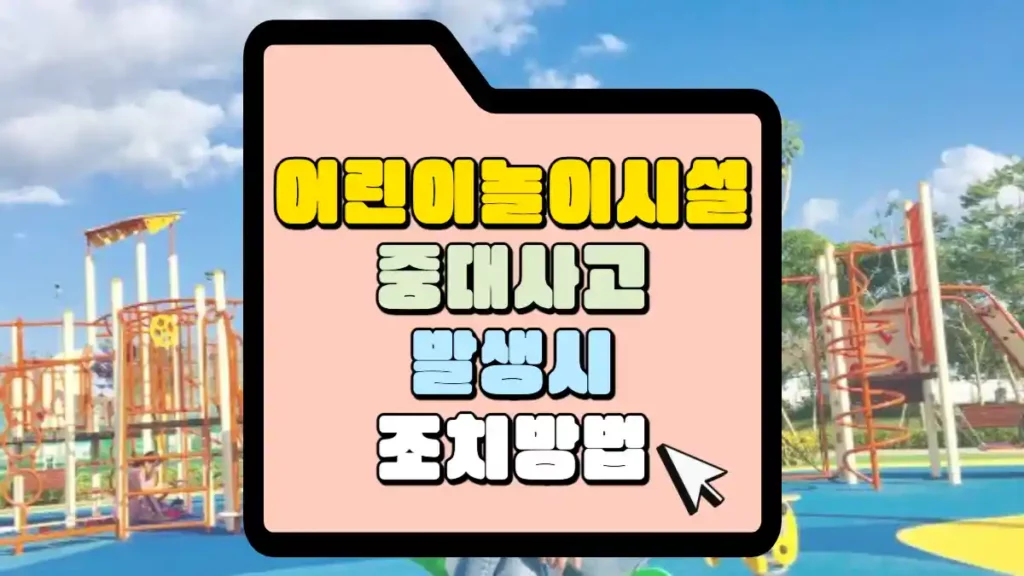 어린이 놀이터에서 아이들이 놀다가 사고가 일어나는 일이 있습니다. 활발하게 움직이고 주의가 부족하기 때문에 이러한 일이 자주 일어나는데요. 경미하게 다치게 되면 다행이지만 크게 다쳤을 경우 관리자는 안전 조치를 한 후에 그 사고 내용을 통보 해야 하는 과정이 필요합니다. 어린이 놀이시설 중대사고 발생 시 조치 방법에 대해서 알아보도록 하겠씁니다.